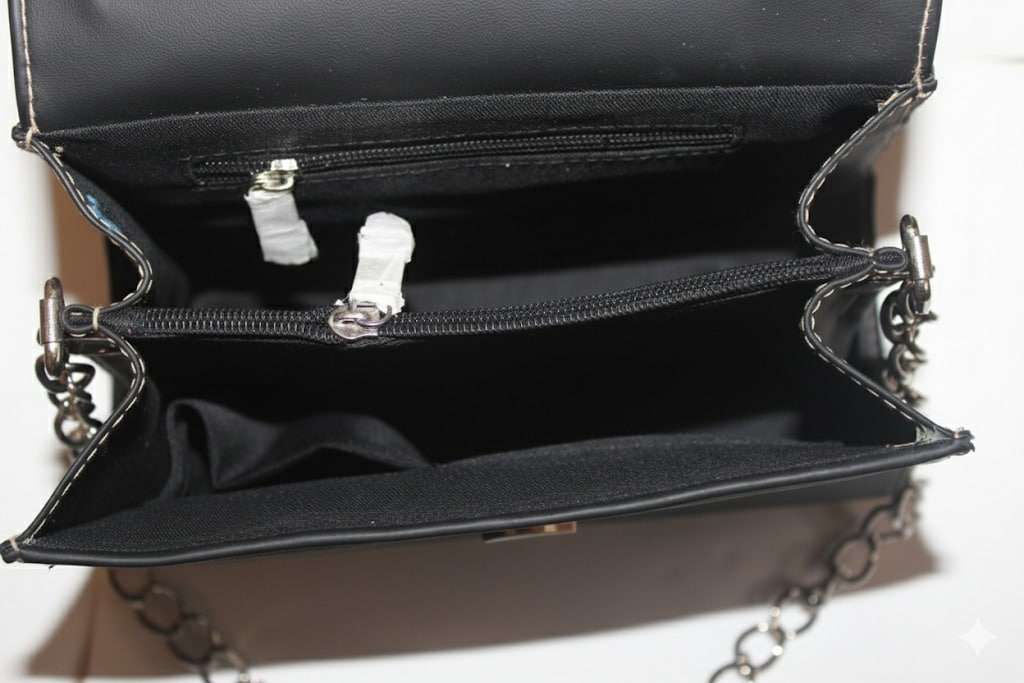 Monarch Black Bag – A timeless piece crafted in a sleek black finish with a structured silhouette. Featuring a chic top handle and elegant chain strap, it blends classic sophistication with modern versatility, perfect for both day and evening wear.